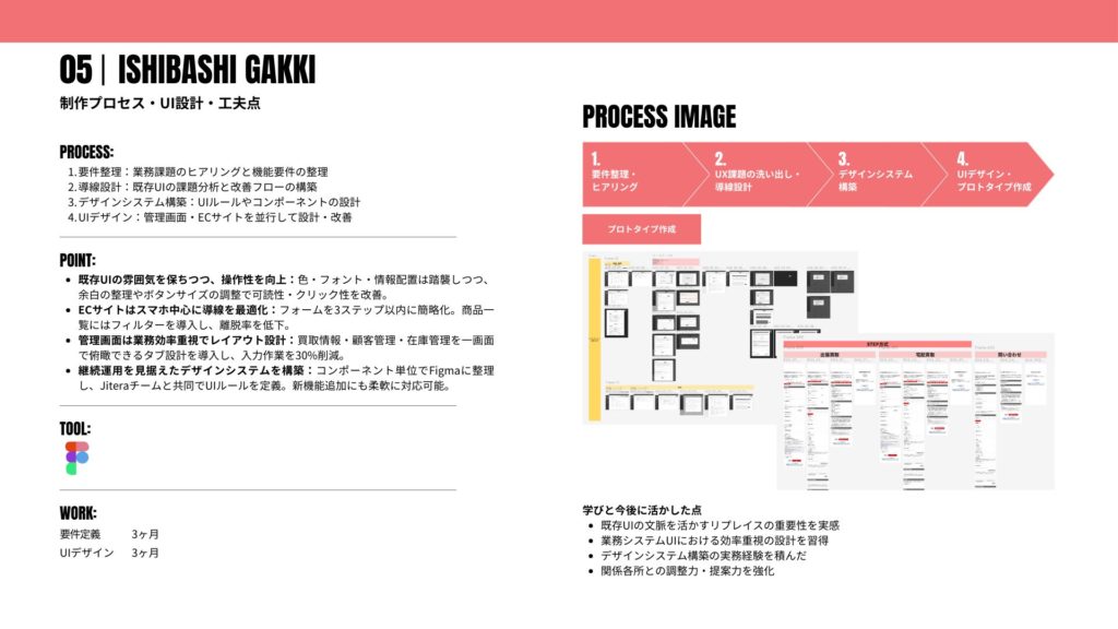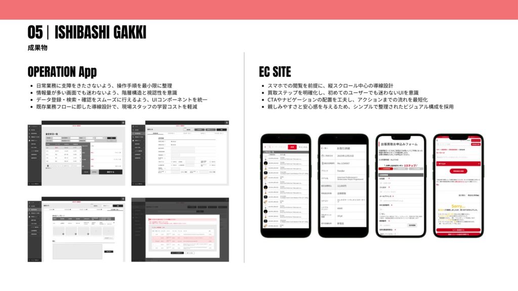 - UIデザイン:管理画面・ECサイトを並行して設計・改善